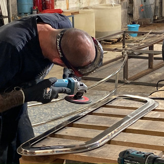 Visite de l' atelier ou l'on trouve des cultures réalisées dans les chutes d'un châssis reconstruit, où trône une moto en attente d'une nouvelle destinée, des hublots chromés d'une vedette en restauration, détour sur la plage du Negresco pour apposer le nouveau fronton du bar de plage, conception d'art encore une fois et déjà les premières esquisses pour le prochain carnaval de Nice..